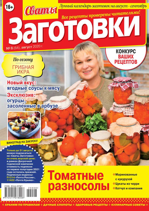 Более 100 рецептов заготовок от Сватов в каждом номере: соленья и маринады, салаты и ассорти, соусы и приправы, заготовки к сезону, сладкие заготовки, напитки, винный погребок, мясные деликатесы, здоровые рецепты, целебные заготовки, дачные хлопоты, правила хранения, а также кроссворды и сканворды для досуга. Лучшими рецептами поделятся с вами сваты Любовь Сергеевна и Михаил Михайлович.