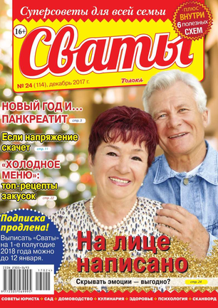 «Сват плохого не посоветует», — говорят в народе. В каждом номере журнала «Сваты» вы найдете: проверенные советы от читателей, экспертов, юристов, медиков, психологов, кулинарные рецепты, секреты здоровья, помощь в воспитании детей разного возраста, песни, байки, анекдоты. И все это в ярком, красочном оформлении.