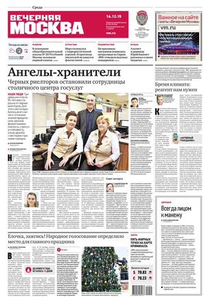 «Вечерняя Москва» — ежедневная российская вечерняя газета, старейшее из вечерних изданий в России, учрежденное в 1923 году. Выходит пять дней в неделю, кроме субботы и воскресенья. Отличается тем, что рассказывает о событиях еще не завершившегося дня. Оперативно освещает хронику и особенности жизни Москвы, охватывает все слои общества и большинство профессиональных и возрастных групп читателей.Издание представлено тремя выпусками – утренним ежедневным, вечерним (выходит три раза в неделю), еженедельным (выходит по четвергам).