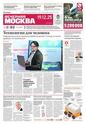 «Вечерняя Москва» — ежедневная российская вечерняя газета, старейшее из вечерних изданий в России, учрежденное в 1923 году. Выходит пять дней в неделю, кроме субботы и воскресенья. Отличается тем, что рассказывает о событиях еще не завершившегося дня. Оперативно освещает хронику и особенности жизни Москвы, охватывает все слои общества и большинство профессиональных и возрастных групп читателей.Издание представлено тремя выпусками – утренним ежедневным, вечерним (выходит три раза в неделю), еженедельным (выходит по четвергам).