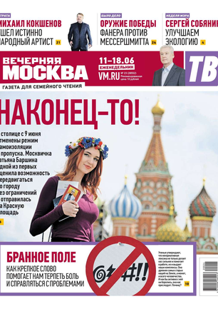 Еженедельный выпуск «Вечерней Москвы» — это значимые события недели, афиша города, новости из сферы отдыха и развлечений, телепрограмма с анонсами и комментариями, авторские колонки журналистов и авторитетные мнения экспертов, детская страничка, специальная рубрика «Золушка», интересные репортажи о необычных судьбах московских жителей, постоянные конкурсы и викторины.