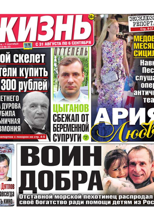 Еженедельная газета, предназначенная для семейного чтения. Основные рубрики: самые скандальные и интересные события прошедшей недели, политический комментарий Леонида Шахова, пикантные истории из звездной жизни, советы профессионального психолога, действенные рецепты здоровья, гороскоп, кроссворд, конкурсы, сканворды, розыгрыши билетов в кинотеатры и множество других призов. Приложения к газете «Жизнь»: «Телеэкран» - телепрограмма с подробными анонсами кино и сериалов, «Овертайм» - спортивное обозрение.