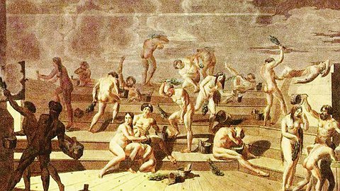 На Руси мылись всегда. Причем не в тазах или кадушках, как в Европе, а под проточной водой. Геродот в V веке до н. э. упоминал, что жители северовостока льют воду на камни и парятся в хижинах. Согласно верованиям славян, бог Перун повелел людям смывать свои грехи струями воды, которая очищала не только тело, но и душу. И они следовали этой заповеди. Летописец Нестор (конец XI — начало XII века), описывая процесс мытья северных славян в бане, называл его «тягостной процедурой», доставлявшей «мучительную радость». А апостол Андрей удивлялся обычаю славян хлестать себя в бане прутьями и обливаться холодной водой, о чем можно прочитать в «Повести временных лет». Правда, чаще всего баню использовали не для мытья, а для того, чтобы согреться. Была она почти в каждом доме. В деревнях это не всегда было отдельной постройкой. Сельские жители парились и мылись в избе в печке, после чего омывались чистой водой. Поэтому в словаре Даля можно найти два понятия: «баниться» — «мыться» и «банить» — «мыть чистой водой».