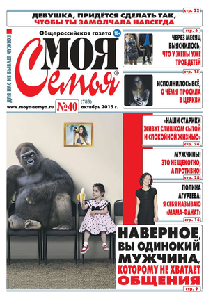 Общероссийская газета «Моя Семья» существует с 2000 года и входит в число самых популярных изданий России. Газета является не просто средством информации; для многих людей стало жизненной потребностью прочитать её раз в неделю – это сродни желанию увидеться с родственниками, поговорить с друзьями. Подавляющее большинство читателей не пропускает ни одного номера. «Моя Семья» задумана как газета о человеческих отношениях. Редакция делает упор на историях из жизни, и многие публикации представляют собой короткие рассказы. Главной основой газетных заметок являются письма читателей, что делает «Мою Семью» уникальной – все истории здесь подлинные.