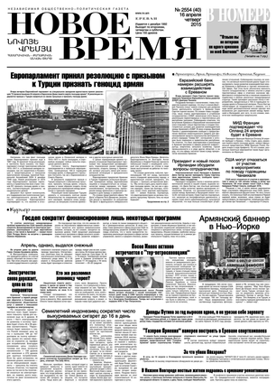 Общественно- политическая газета “Новое Время” была создана в 1992-м году и за 20 лет своего существования сумела заслужить среди армянских читателей право называться лучшей русскоязычной газетой в РА. Помимо сугубо политических тем издание обращается также к вопросам социальным, научным, культурным. Внимание уделяется и проблемам армянской диаспоры…