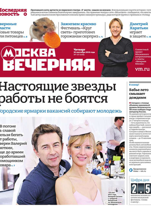 «Вечерняя Москва» — ежедневная российская вечерняя газета, старейшее из вечерних изданий в России, учрежденное в 1923 году. Выходит пять дней в неделю, кроме субботы и воскресенья. Отличается тем, что рассказывает о событиях еще не завершившегося дня. Оперативно освещает хронику и особенности жизни Москвы, охватывает все слои общества и большинство профессиональных и возрастных групп читателей.Издание представлено тремя выпусками – утренним ежедневным, вечерним (выходит три раза в неделю), еженедельным (выходит по четвергам).
