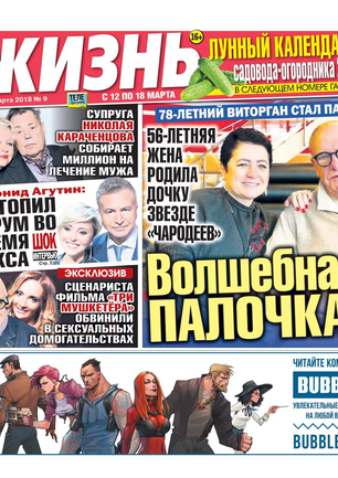 Еженедельная газета, предназначенная для семейного чтения. Основные рубрики: самые скандальные и интересные события прошедшей недели, политический комментарий Леонида Шахова, пикантные истории из звездной жизни, советы профессионального психолога, действенные рецепты здоровья, гороскоп, кроссворд, конкурсы, сканворды, розыгрыши билетов в кинотеатры и множество других призов. Приложения к газете «Жизнь»: «Телеэкран» - телепрограмма с подробными анонсами кино и сериалов, «Овертайм» - спортивное обозрение.